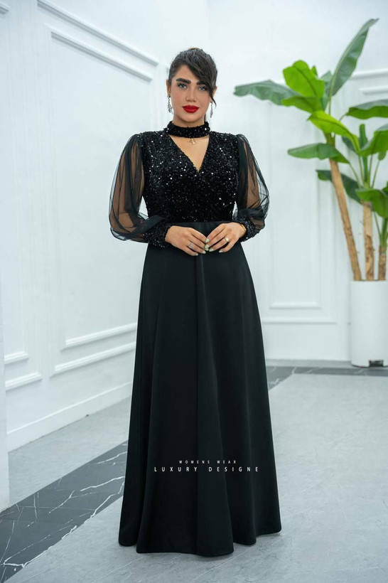 مدل ماکسی گلشن جنس کرپ کش و پولک و آستین تور